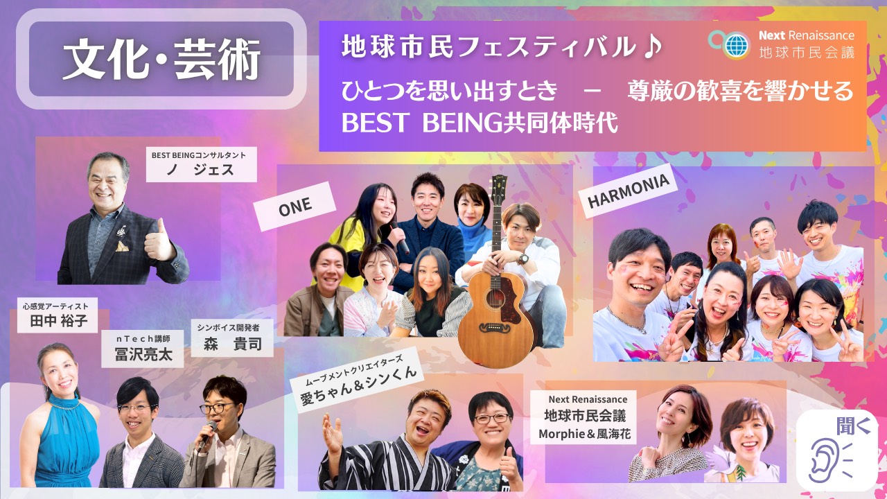 Next Renaissance地球市民会議は、AI時代に人間をどのように再定義するのかに焦点を当て、この時代を生きる誰もが共通に学ぶことができる『世界基軸教育』の定立を目指します。 そして、グローバルスタンダードな教育の胎動を通して、人間ひとり一人の幸せを優先する世界の実現に向け、政府による政策制度をじっと待つのではなく、目覚めた地球市民として積極的に集い、語らい、観点の循環を起こしながら、Next Renaissance を起こす意識のイノベーションをリードします。